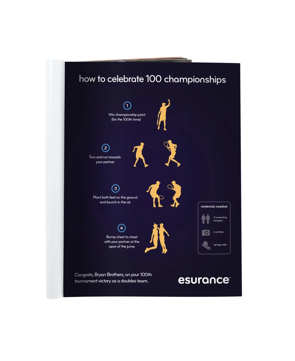 This is a TV spot we made to celebrate the Bryan Brothers winning 100 championships. We aired it in the first commercial break after match point. The print ad ran in USA Today the day after.