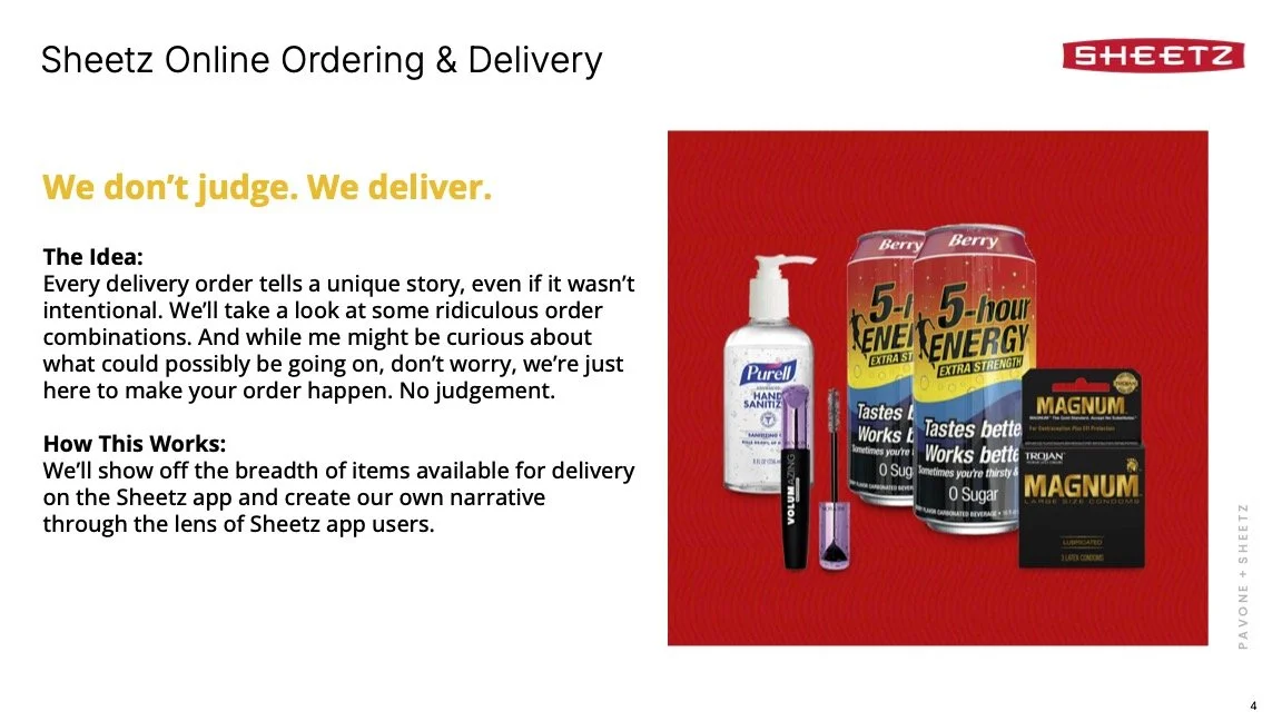 I don’t often put spec work in my book but this is a campaign that almost saw the light of day, kind of did, but not in the way I would have liked. I’ll tell you more during an interview. Basically, Sheetz wants you to order delivery on their app and not through a third party like Door Dash.